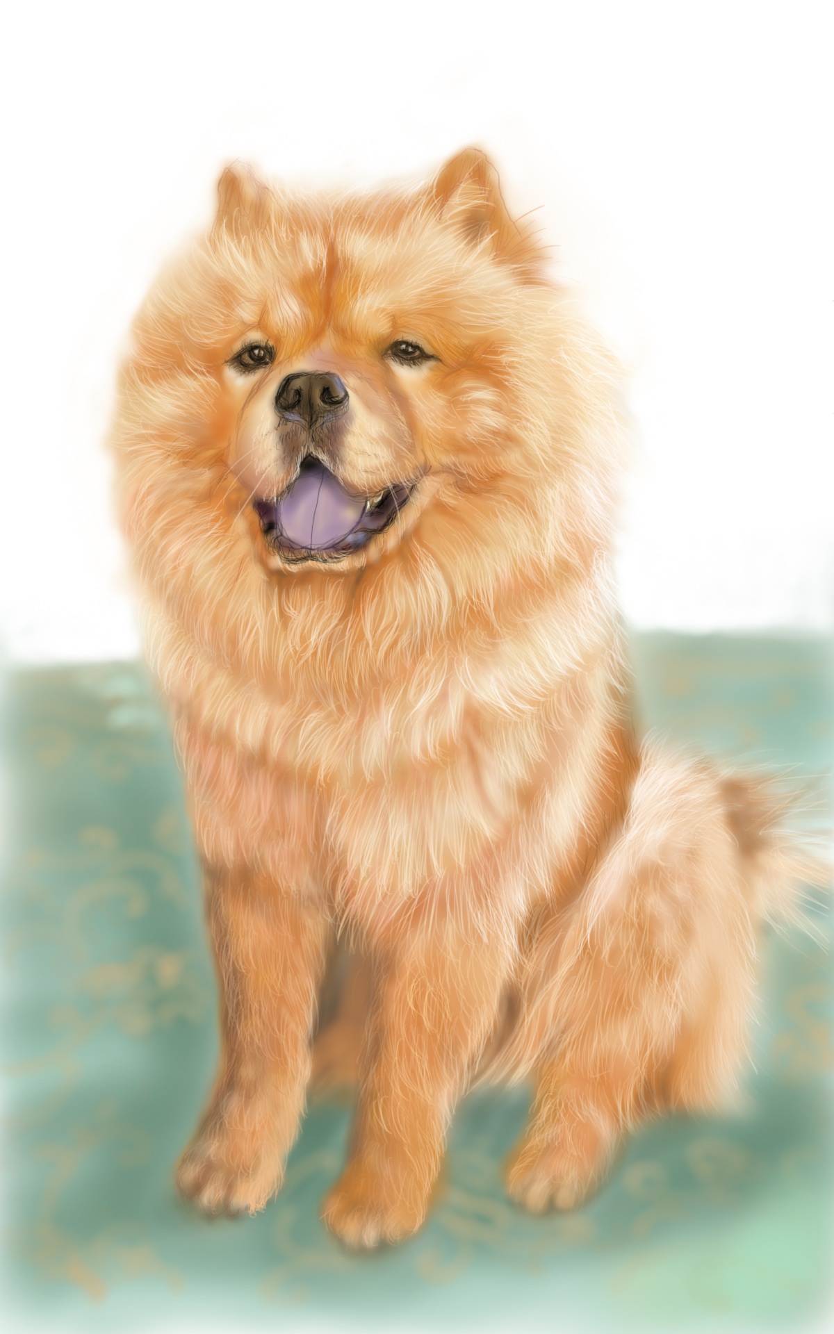 這幅畫狗狗的嘴角微微上揚,與眼神的柔和感相結合,使整幅畫的氛圍變得更加溫暖、充滿幸福感。筆觸風格呈現出一種輕柔細膩、寫意與寫實兼具的特色,透過層次豐富的毛髮表現、溫暖的光影處理以及簡潔柔和的背景,使整體畫面充滿了陽光般的溫暖感。這樣的畫風不僅突出了狗狗的可愛與親和力,也讓整幅作品充滿了幸福與寧靜的氛圍,從狗狗的眼神裡可以感受到牠的喜悅。